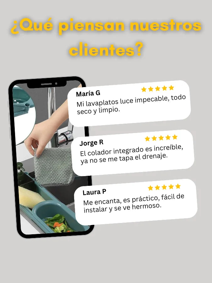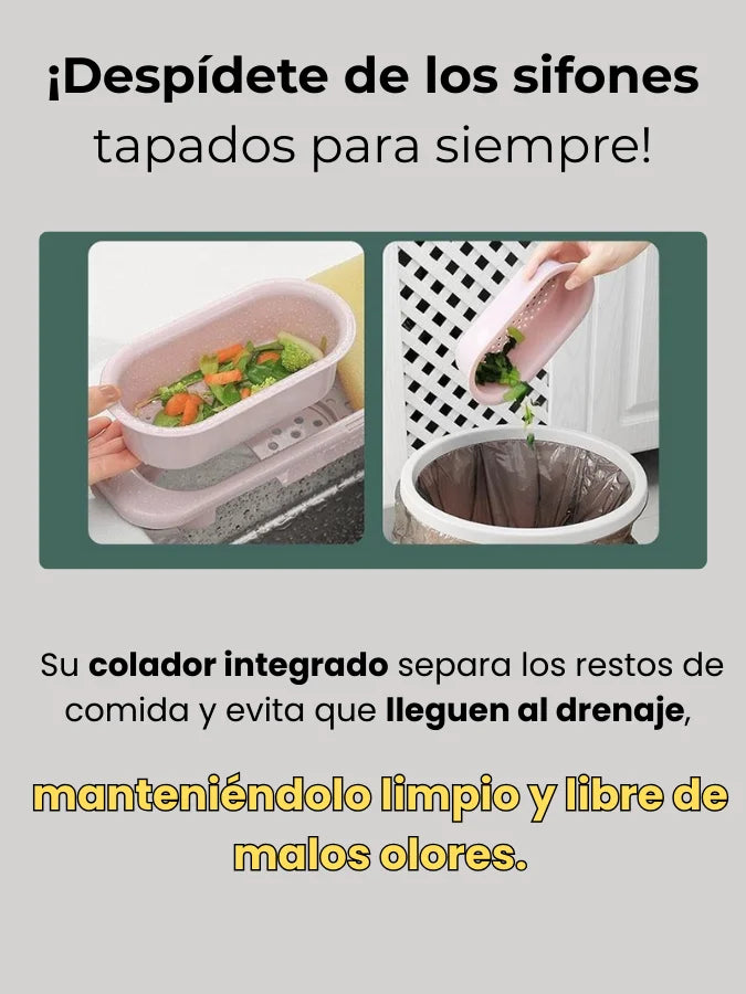 Sí, CleanRack™ viene con un colador integrado que separa restos de comida para mantener tu drenaje limpio y libre de atascos. 🚰