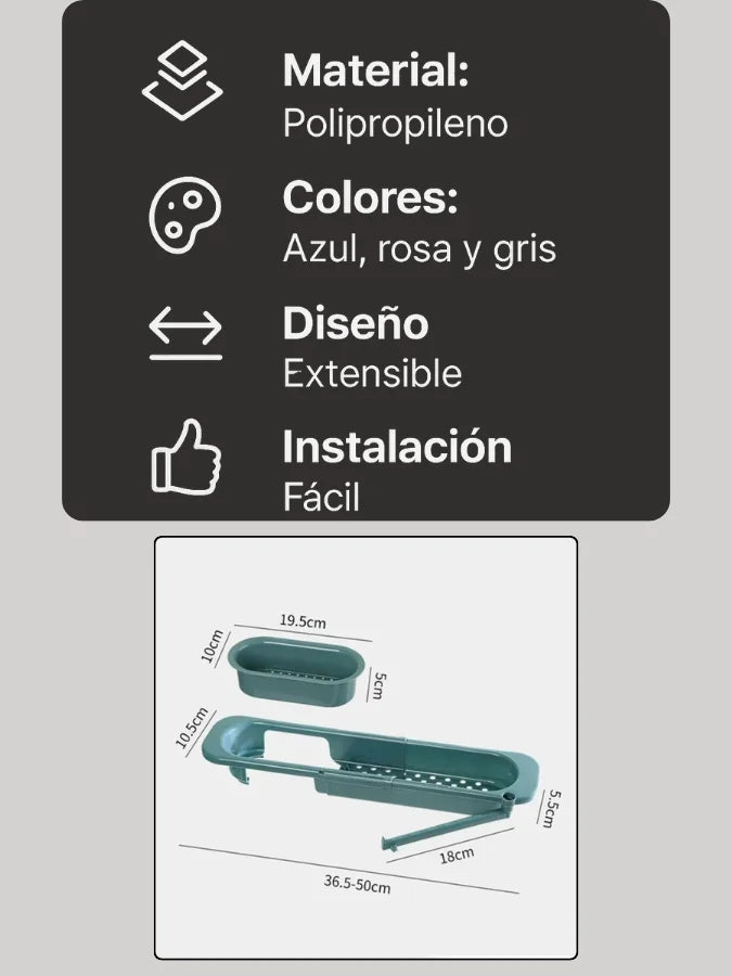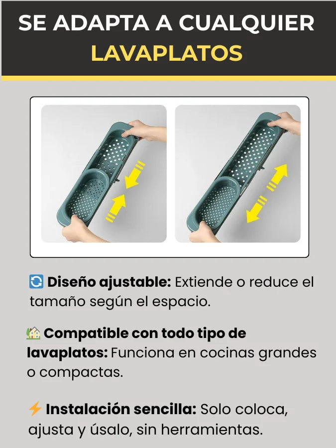 ¡Sí! 🙌 Gracias a su diseño extensible, puedes ajustarlo desde 39,5 cm hasta 50 cm, adaptándose a lavaplatos pequeños, medianos y grandes.