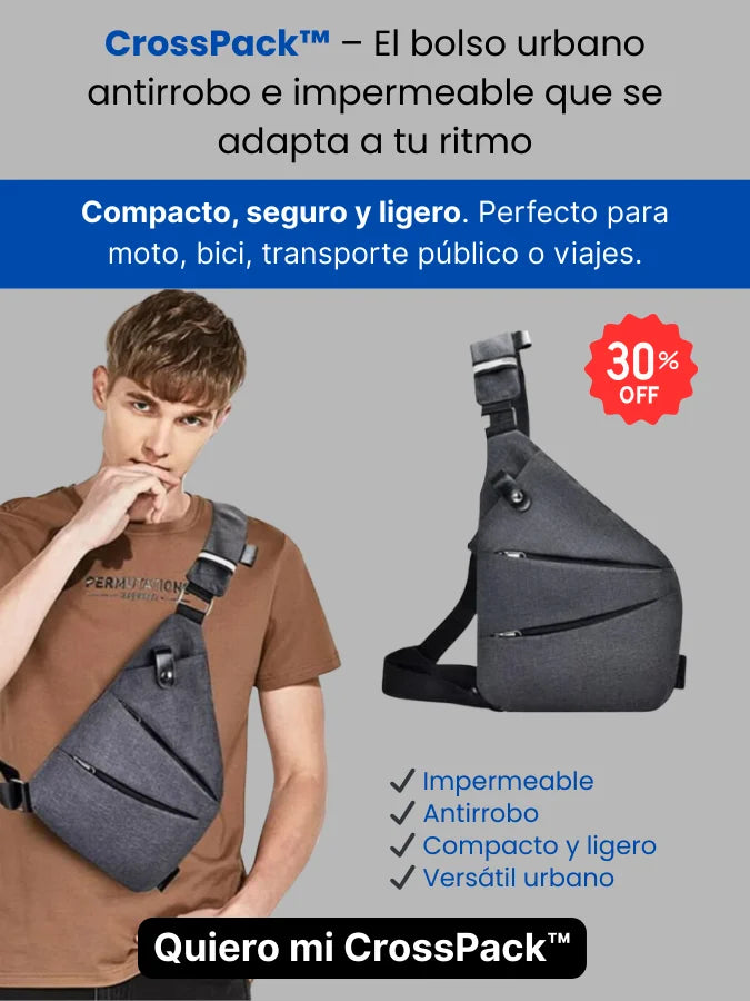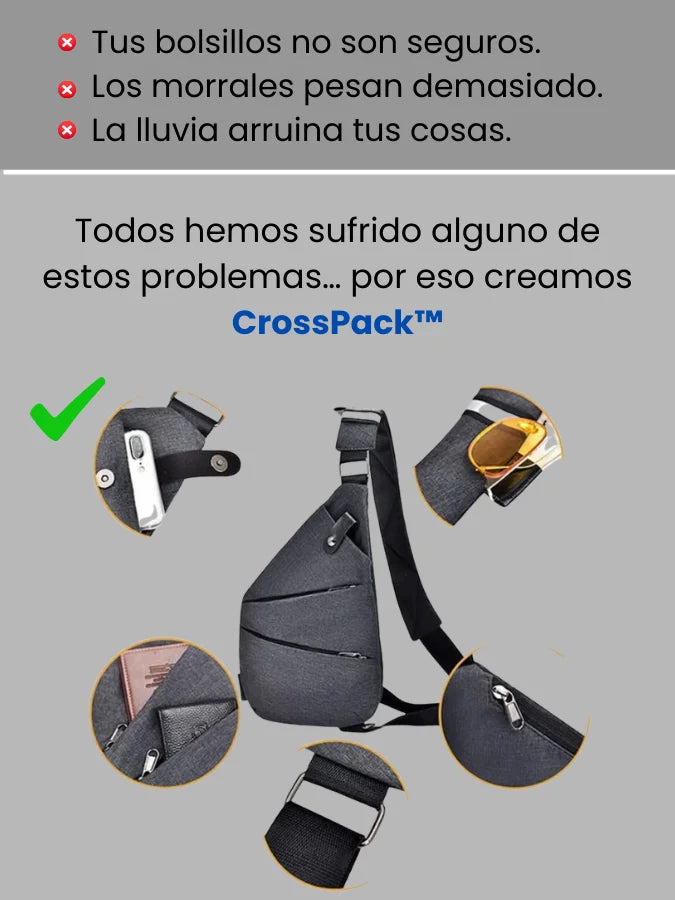 Sí. CrossPack™ está fabricado en poliéster de alta densidad, resistente a la lluvia ligera y salpicaduras. Protege tu celular, billetera y documentos en tus recorridos diarios.