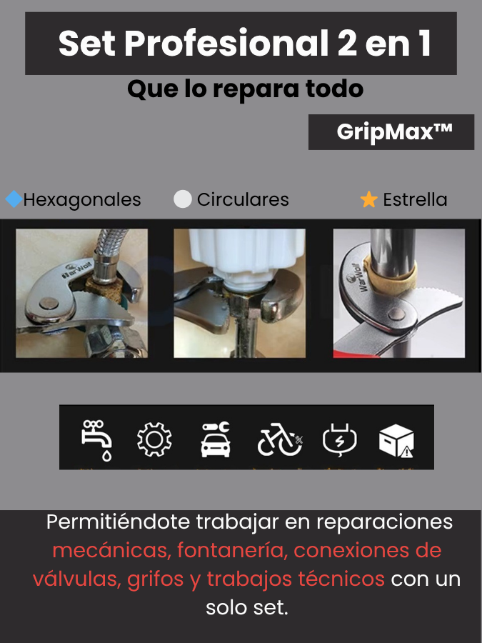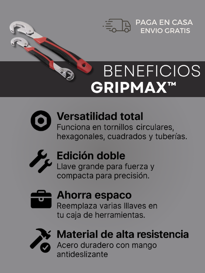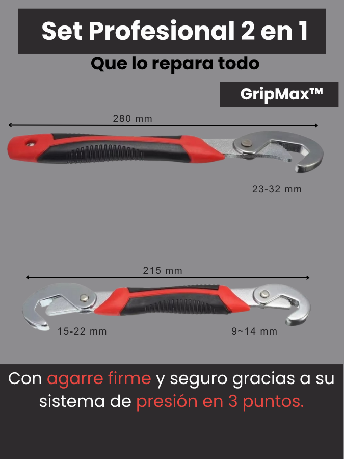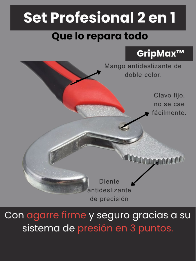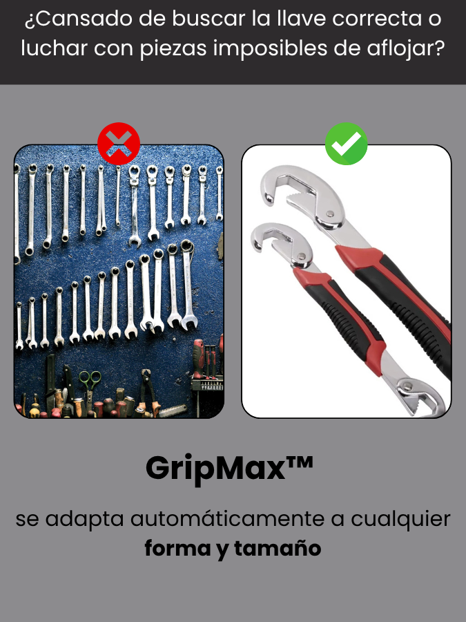Sí. GripMax™ utiliza un sistema de presión en 3 puntos que se ajusta automáticamente a tornillos circulares, hexagonales, cuadrados, tuercas e incluso tuberías, sin importar su tamaño o desgaste.