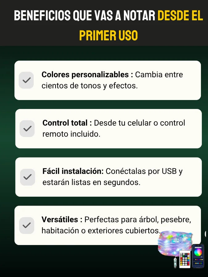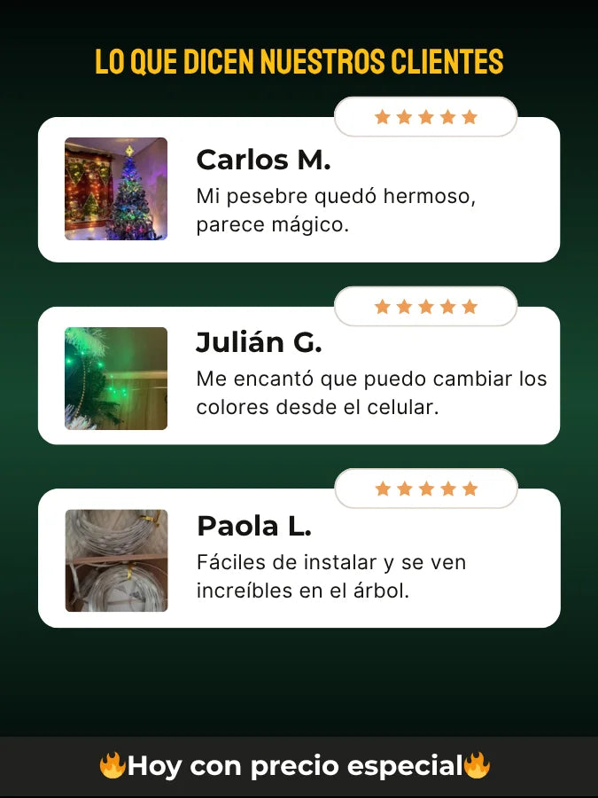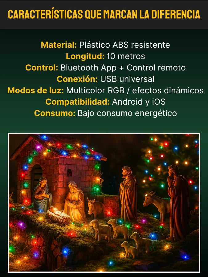 Cada instalación tiene 10 metros de longitud, ideal para árbol o pesebre.