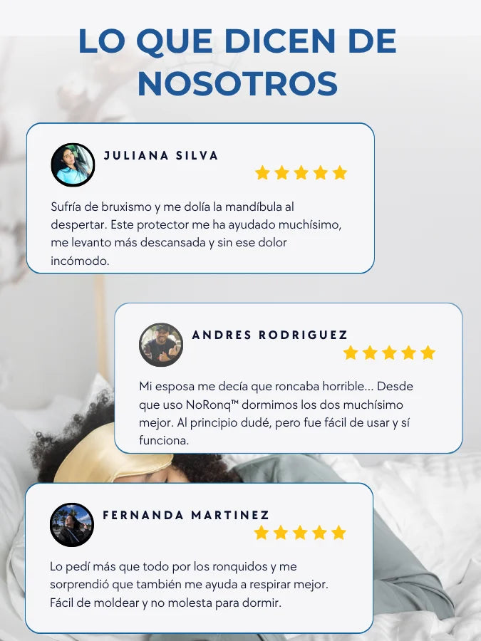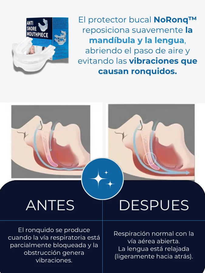 Tu pedido incluye 1 protector bucal NoRonq™, un estuche para guardarlo y una guía de uso paso a paso. Además, el envío es gratis y puedes pagar al recibir.