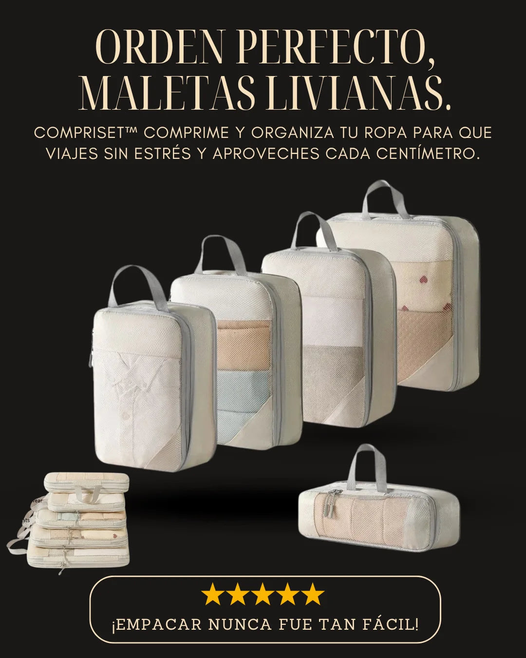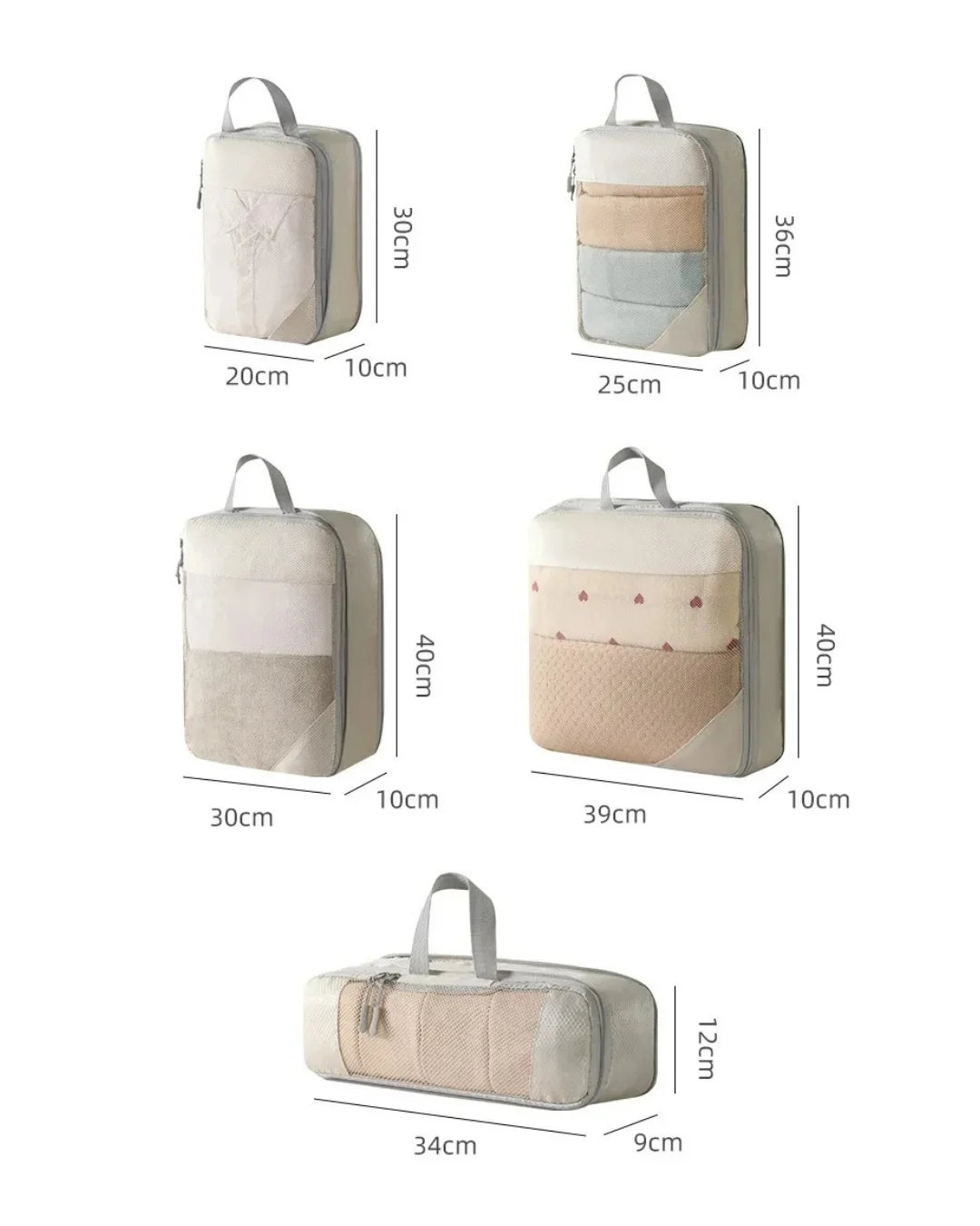 Incluye 5 bolsas de distintos tamaños para cada tipo de prenda.