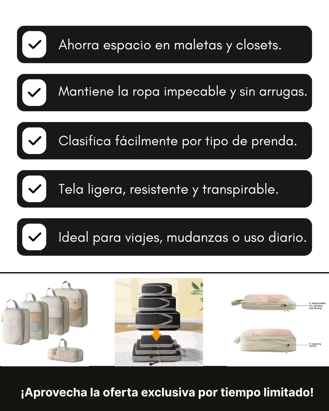 Perfectas para equipaje de mano o facturado.