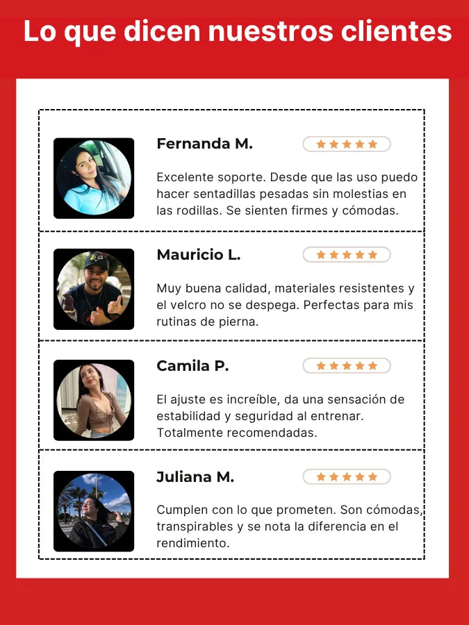 Incluye 2 rodilleras (una para cada pierna) y una guía de ejercicios gratuita para aprovecharlas al máximo.